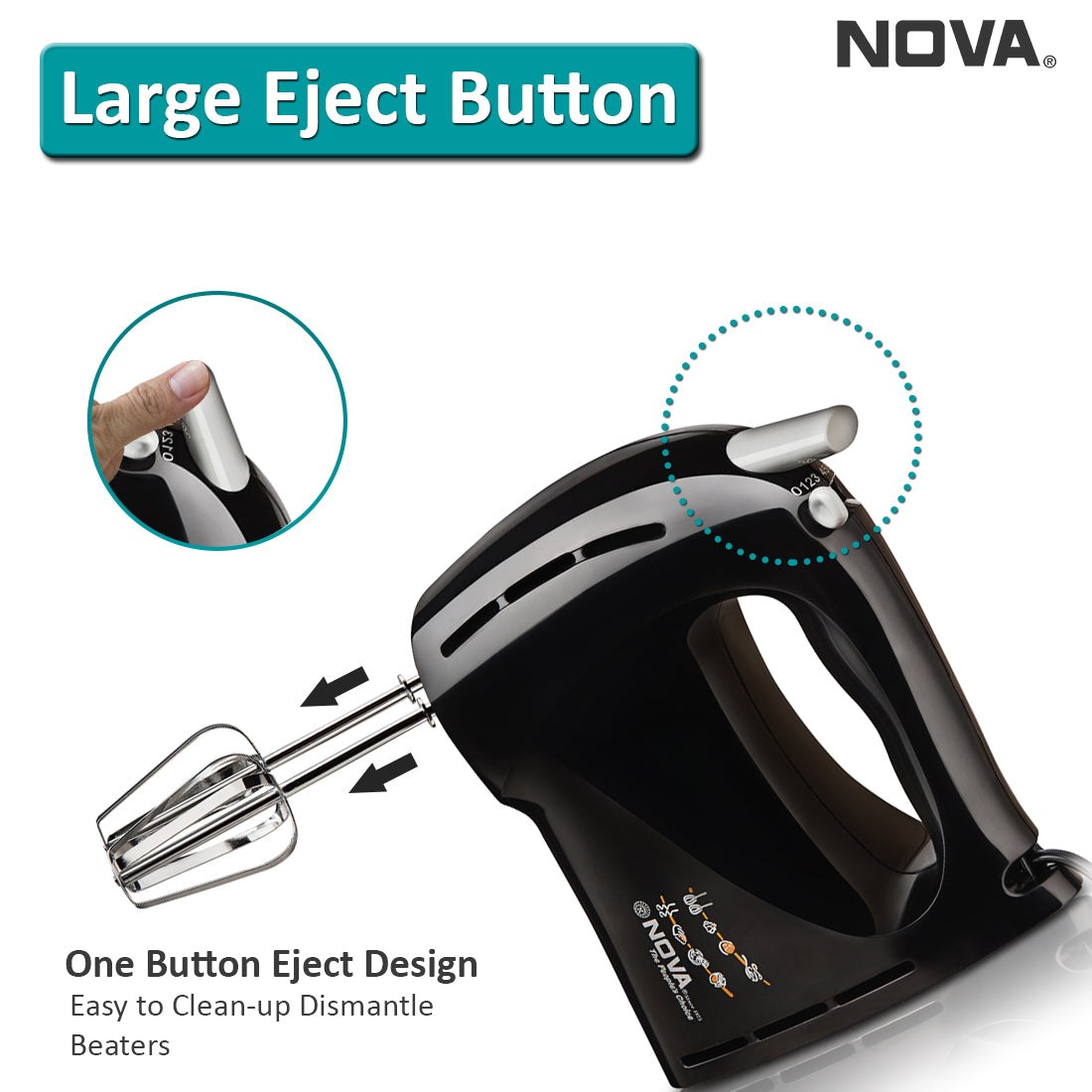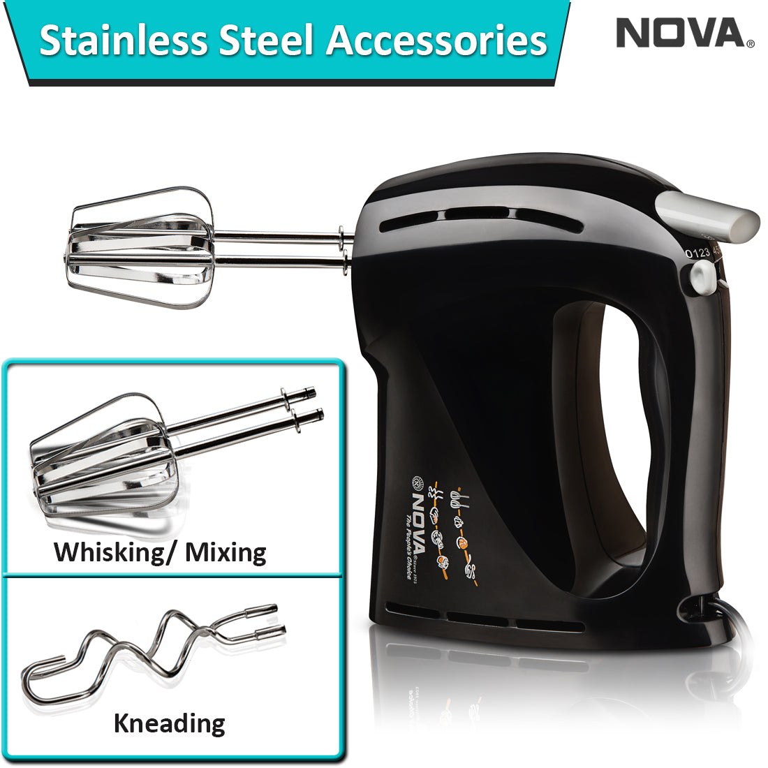 It is combo of blender. mixer and whipper. It has eject safety button and 1st-2nd speed for bulk and dry foods such as flour. butter and potatoes. 3rd speed to start liquid ingredients for mixing salad dressings and 4th speed for mixing cakes. cookies and quick breads.