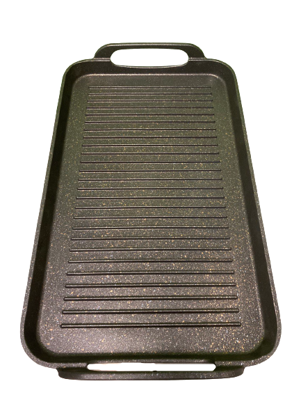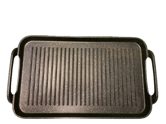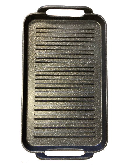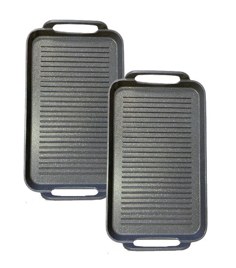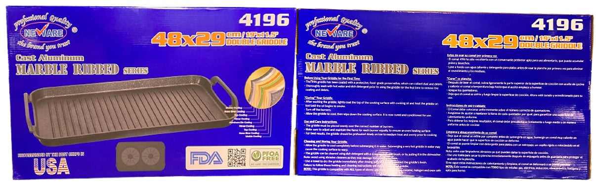 NEWARE’S 2 pack ribbed grills offers the most impressive heating abilities of MARBLE die cast aluminum.?The double-burner pan combines a large grilling surface with high ridges that create perfectly seared grill marks while allowing excess fat to drain away and is oven safe up to 550??F.